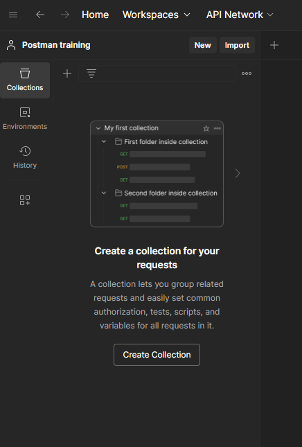 Once Postman has been installed for your respective operation system (we are using windows in this tutorial) please start creating your very first collection - which will be used to hold the selected API and its operations. Like seen in the picture below, click the collections tab in the left nav bar (can be found on the API details page). Choose Open API 3 (YAML) and it will automatically download the API definition file, which you can import into your Postman collection.