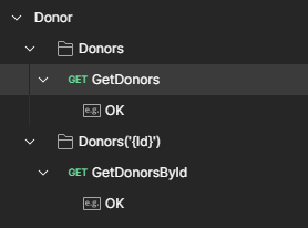 After you have imported the collection file you should see the name of the API, and its operations like for this example of the Donor API.